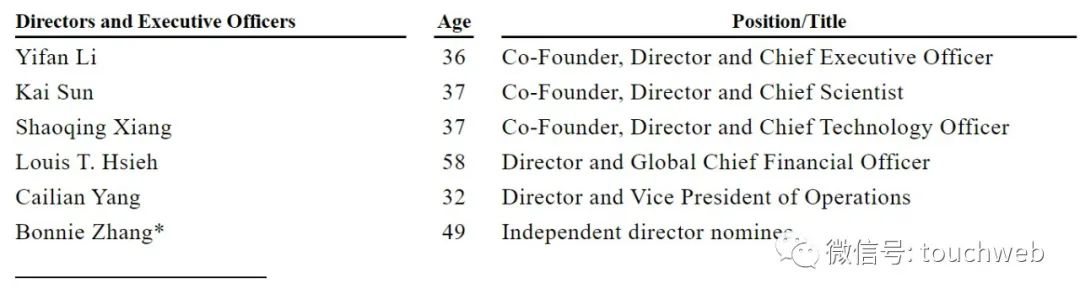 此次IPO前,李一帆、向少卿分别持股为8.6%,有25.7%的投票权;孙恺持股为8.9%,有26.5%的投票权;谢东萤持股为1.2%,有0.4%的投票权。