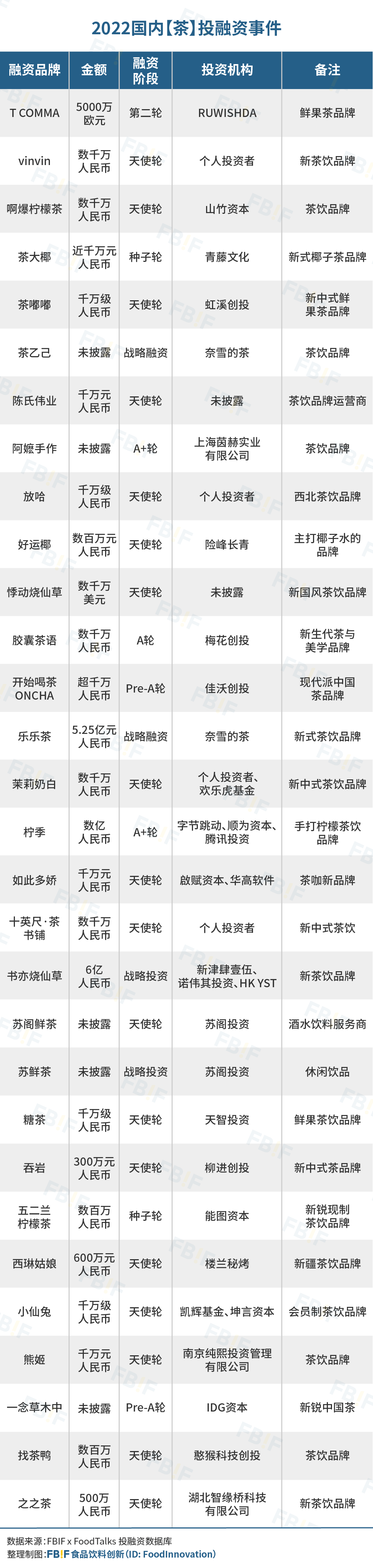 除了新茶饮外,零售茶品牌一念草木中、胶囊茶语、ONCHA开始喝茶和吞岩也获得了融资。