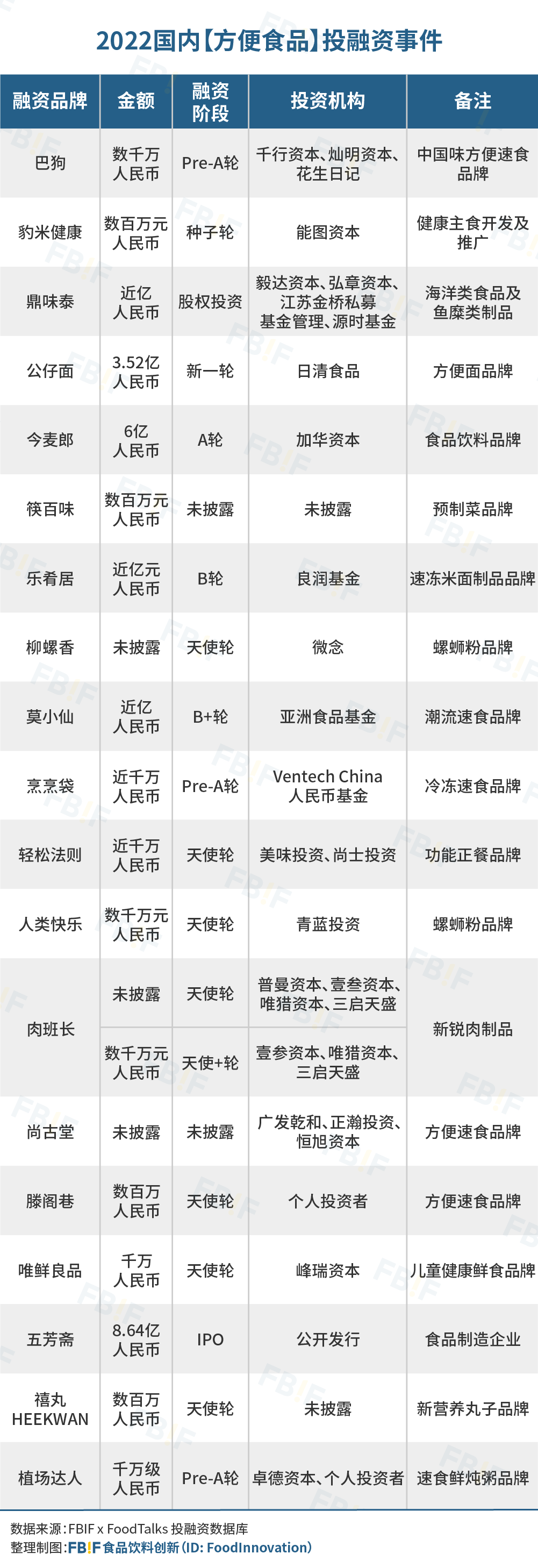 从产品观察,螺蛳粉在近几年热度颇高,但一直到2022年才出现了投融资:微念投资柳螺香、青蓝投资旗下基金投资人类快乐。人类快乐将自身定位跳出速食,打出“就是解馋”的口号,强调“个更大、料更多、味更足”,在一众螺蛳粉品牌中跻身而出。