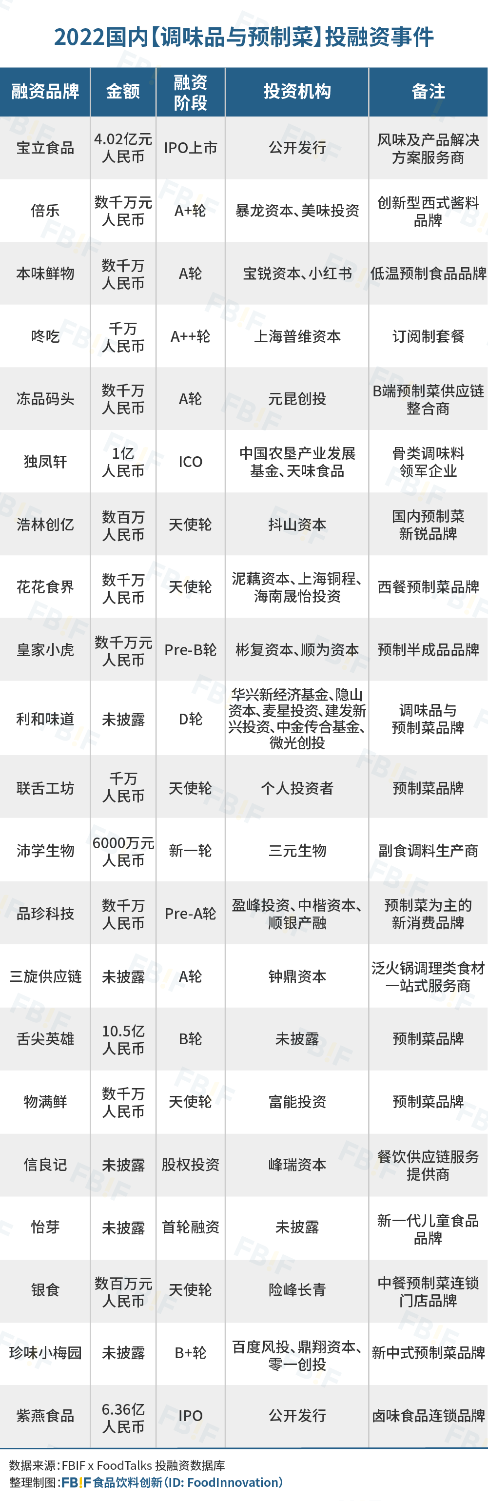2022年,调味品与预制菜赛道总体投融资数量上升。