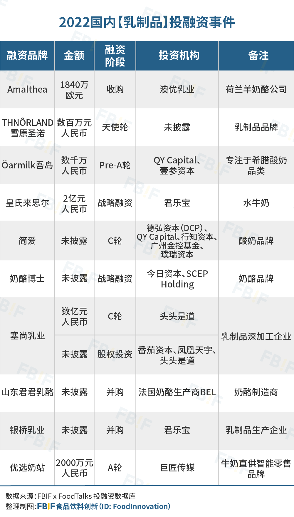 2022年国内乳制品行业共发生11起投融资事件,与2022年持平。