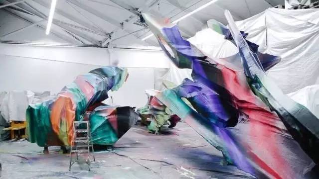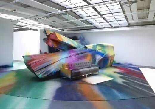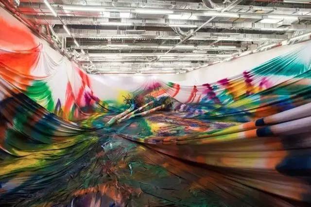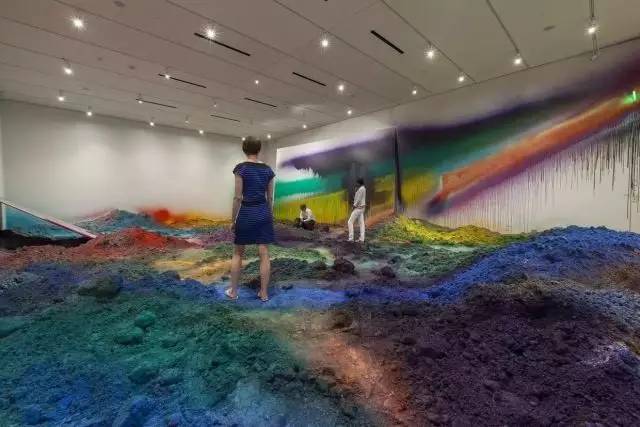 卡塔琳娜·格罗斯(Katharina Grosse)是一名著名的德国艺术家。她擅长用色彩丰富的亚克力颜料喷绘来创作大型绘画雕塑景观。色彩是她作品中的核心,她将色彩延展到墙壁、地板、床、土堆、树墩和石头上,仿佛书写着一卷惊世之著的各个章节,淋漓尽致地展现了人类感知力的矛盾性。