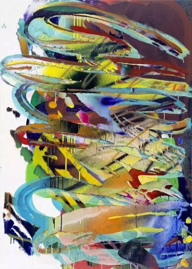 卡塔琳娜·格罗斯的绘画具有超越边界的膨胀性。在她20世纪90年代的早期作品中,绘画动作本身就成为她探讨的主题。在两米见方的画布上,她大笔挥洒,其动作姿势虽在画面边界的控制之下,却极富活力。她的绘画一气呵成,笔下流淌出一条连贯的色彩河流。作品的尺幅越来越宽,而她的绘画动作也不断延展,终于将墙壁也变为她的画布。