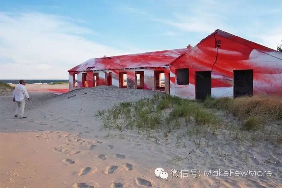 格罗斯将喷绘艺术应用到了庞大的建筑物上。