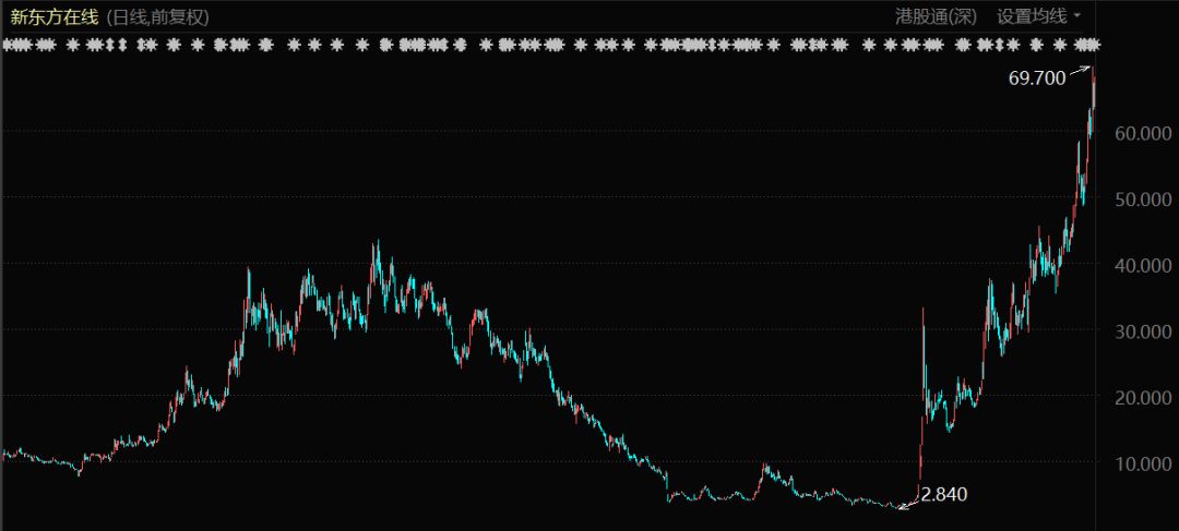 平台账号GMV与产品种类、销量的迅速上涨,带动着新东方在线的股价迅猛上涨,2022年新东方在线港股涨幅接近20倍,堪称传奇。