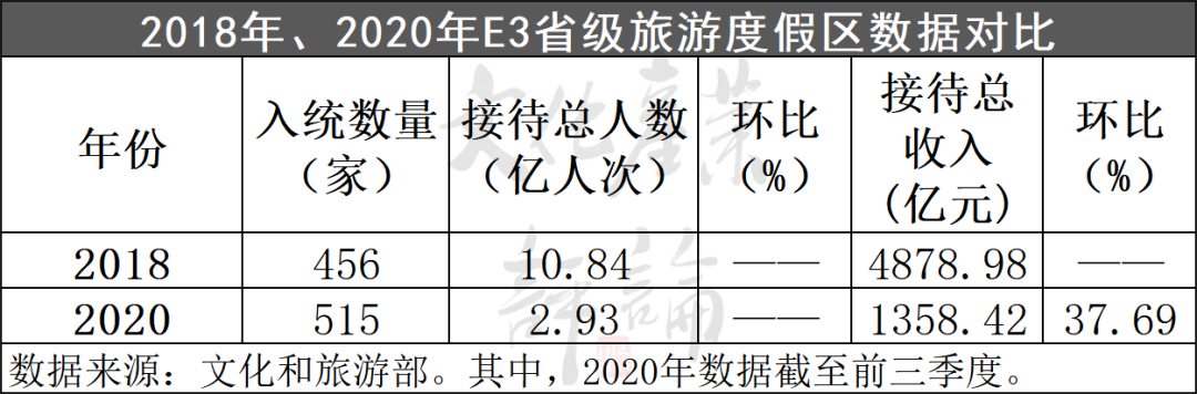 与此同时,省级旅游度假区建设成效斐然。据文旅游数据显示,2018年全年,456家省级旅游度假区旅游接待总人数10.84亿人次,旅游接待总收入4878.98亿元;2020年前第三季度,515家省级旅游度假区旅游接待总人数2.93亿人次,旅游接待总收入1358.42亿元,收入环比上涨37.69%。