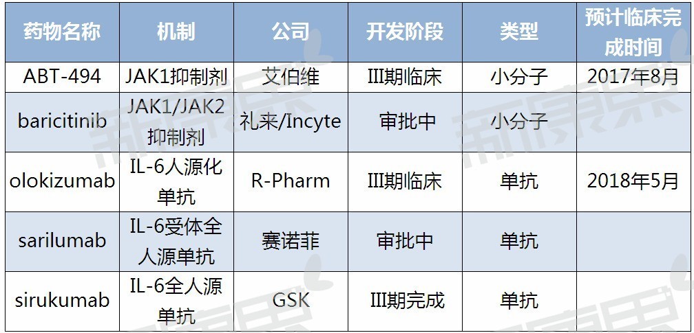 有5种属于首创新药,它们将是人类治疗类风湿疾病的新武器,详细情况见下表,我们一一来看一下这5种药物各有什么特点以及它们的销售前景如何。