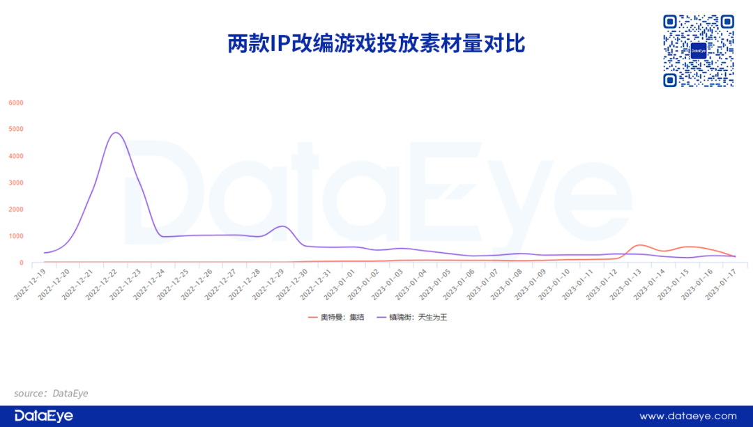 DataEye研究院认为《镇魂街:天生为王》和《全明星激斗》均呈现出“测试充分、节点爆发、整体克制”的特点,尽管产品上线收入投放力度飙升,但与2022年上线期的大多游戏相比,其买量素材投放较为克制。其中原因可能是: