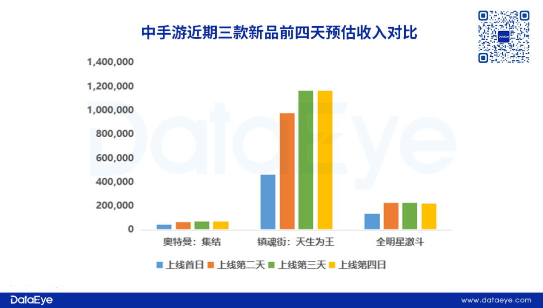 三款产品iOS端预估收入表现;数据来源:点点数据