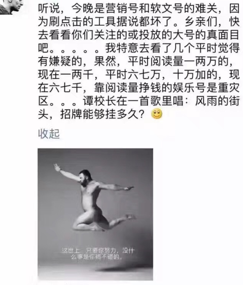昨晚,由于微信平台更换接口,一些狂刷数据的号彻底裸奔,平时头条都是均阅读10万+,结果被打回原形,阅读最惨的只有7000左右,稍微好点的也只有1万左右,很多号阅读比平时少了近10倍。