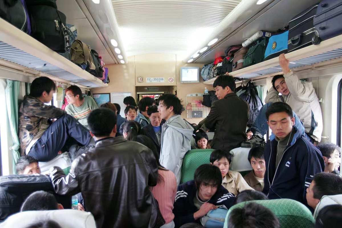 题图:2006年1月13日,广州至四川的一趟绿皮火车车厢。来源:视觉中国