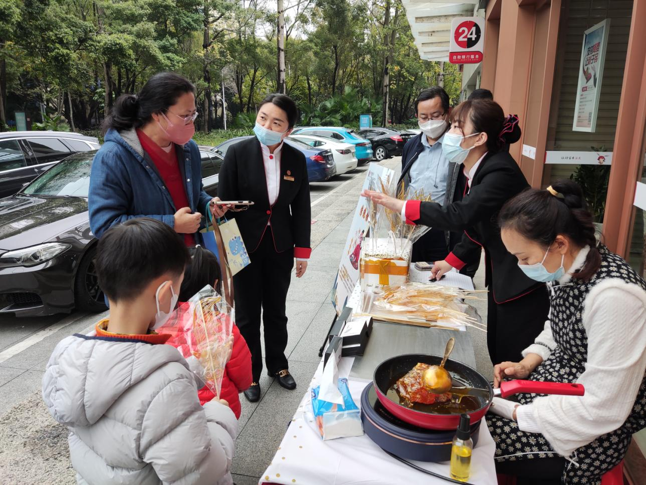 一勺糖丝飞写快,龙蛇花鸟画糖卖。糖画承载着千百年民间老艺人的技艺。中信银行深圳景田支行在网点门口摆起了糖画摊,为所有前来办理业务的客户免费制作糖画。糖画制作老师手艺精湛,一勺勺液态的麦芽糖在不同角度不同方向的倾注下,画成了精巧生动的糖画,引得路过的客户纷纷围观。客户在等待糖画制作的过程中,听着糖画制作技巧和传统风俗,一片欢声笑语,洋溢着过年的气氛,热闹纷呈。