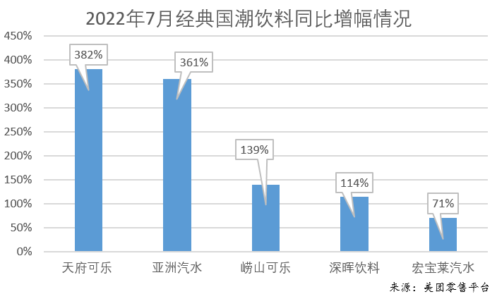 仅以美团数据为例,崂山可乐、宏宝莱、天府可乐等国产饮料,2022年上半年的美团销量对比去年同期增幅超过150%;另有媒体报道,大窑汽水2021年的销售额估计能到30亿左右;北冰洋在短短3年内实现了1300万的营收,成为北京本地消费者最喜爱的汽水之一……