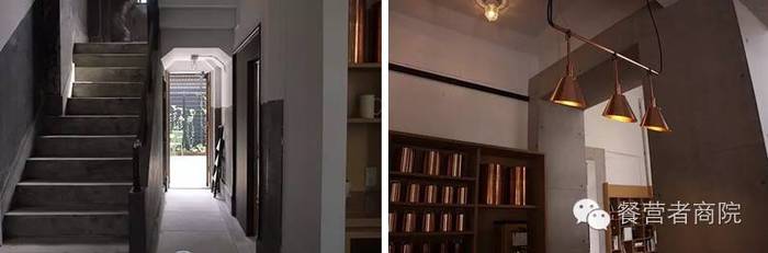 八木隆裕把二层作为画廊,一层与院子改成咖啡馆。咖啡厅最大可能的保留了老建筑的原始结构,清水混凝土的墙面与地坪,搭配开化堂的最新设计的铜制吊灯,有着旧时光的安静与从容。