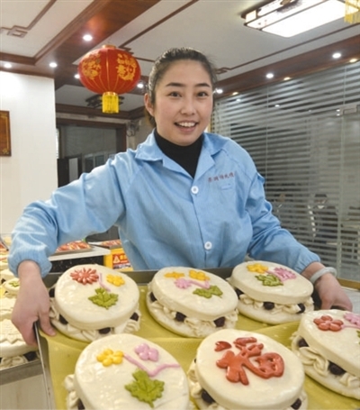 山东省临清市有过年蒸花糕、做花馍的习俗,当地商户制作出各式各样的花糕、花馍,供应春节市场。 徐延林摄(人民视觉)