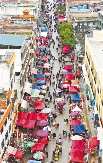 1月15日,湖南省郴州市嘉禾县塘村农贸市场一片兴旺。 黄春涛摄(影像中国)