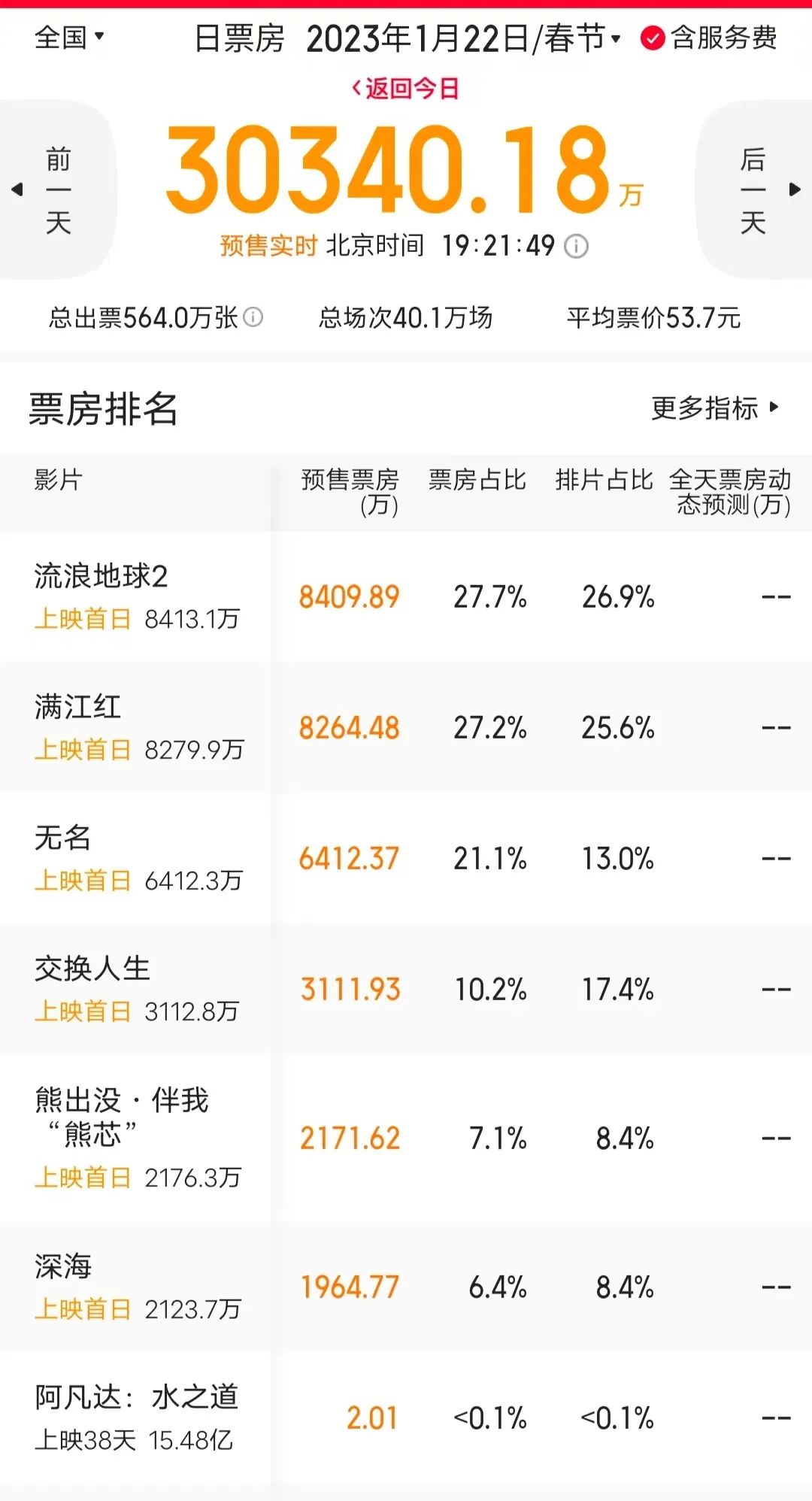 还有一个不能忽视的隐忧,那就是奥密克戎的残余影响。虽然各大一线城市基本过峰,“阳康”的群体对于走进电影院已经没有什么压力了,但是对于很多地方来说,依然还有很多人没有“阳过”。而且老人和孩子的抵抗力都比较弱,出于对他们健康状况的担心,很多家庭会选择取消观影计划。这就造成了春节档主打合家欢,结果观众直接合家不来的情况。