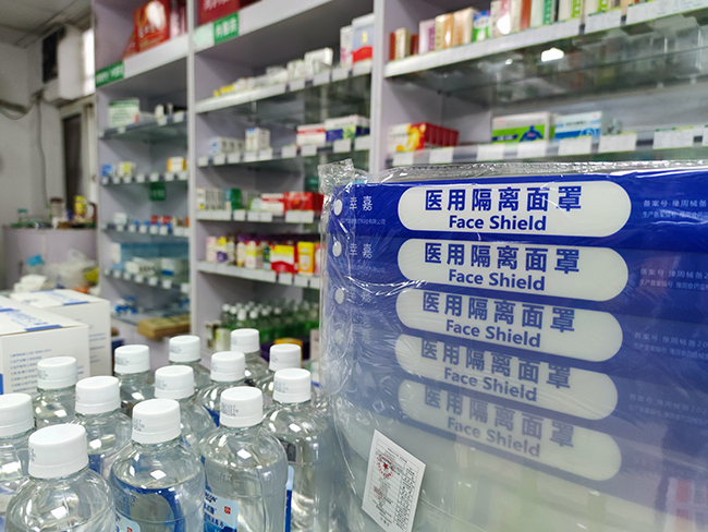 杭州市区一药店将防护用品摆放在柜台显眼位置。人民网 康梦琦摄