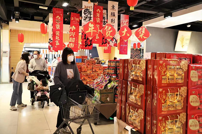 市民到超市选购年货,喜迎新春佳节。受访者供图