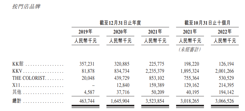 2022年前十个月,KK集团收入30.67亿元,期内利润1.89亿元。