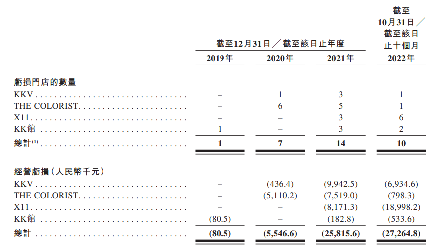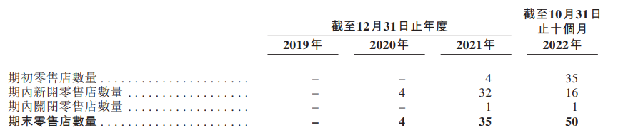 2021年与2022年前十个月,X11亏损门店分别为3家与6家,期末的门店总数则分别为35家与50家。