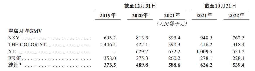 KK集团以一家X11门店的GMV为例,披露了同店销售数字。