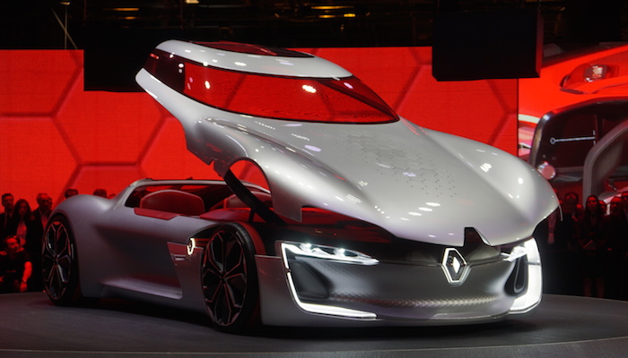 上午9时15分,雷诺集团主席兼首席执行官卡洛斯·戈恩(Carlos Ghosn)及雷诺汽车设计高级副总裁劳伦斯•范•登•艾克(Laurens van den Acker)揭晓雷诺全新概念车TREZOR。