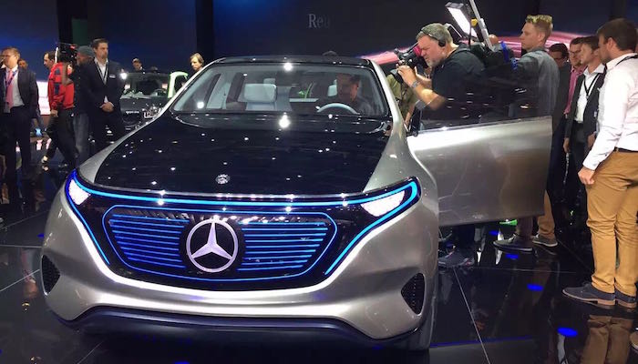 奔驰带来了全新电动概念车Generation EQ。这款SUV基于奔驰全新一代电动车平台打造,封闭式前格栅和蓝色条纹透出新能源的未来感,车标与前格栅融为一体,整体延续戴姆勒新概念车的设计理念;内饰最大的亮点是24英寸的TFT屏,强化导航和Car2X功能的使用;动力方面EQ搭载70kWh的电池组,双电机能够提供多达402马力,百公里加速小于5秒,续航则达到500公里。戴姆勒CEO蔡澈表示,未来EQ家族会衍生出SUV,轿车,旅行车,轿跑,2座及4座掀背等一系列车系。