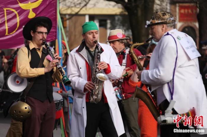 温哥华华埠春节庆会已成为加拿大华人社区主办的最具规模的新春活动之一,亦是展现温哥华多元文化特色的代表性节庆活动。图为艺术家们在游行中演奏乐器。余瑞冬 摄