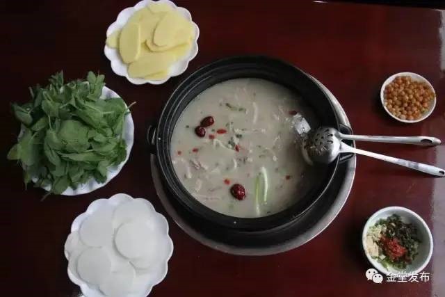 特色羊肉汤:金堂黑山羊是全国农产品地理标志,营养价值丰富,羊肉熬出来的汤浓郁肉香、不腥不膻、味道鲜美的滋味。