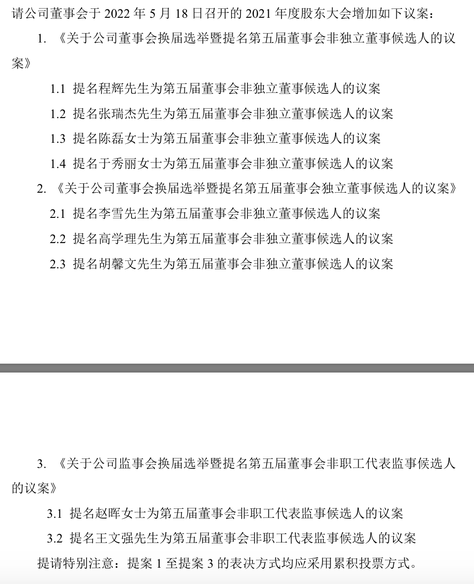 2022年5月7日,紧接着公司便收到了持股4.48%的嘉兴傲晟的临时提案,提名一众董事候选人,预在2021年年度股东大会上投票,也正是上述诉讼涉及的5月18日的这场股东大会。