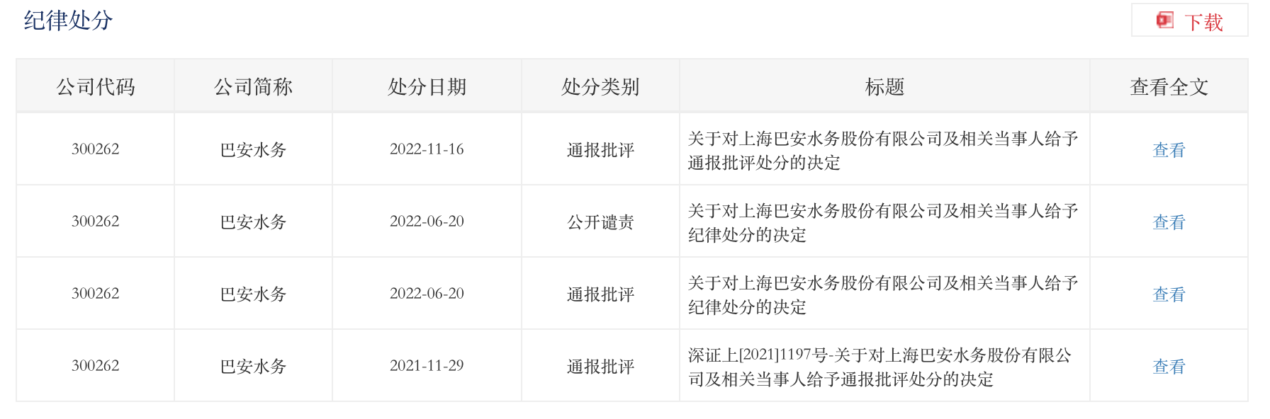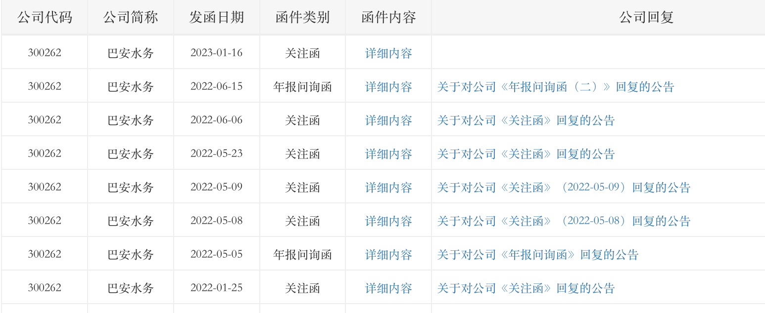 上述细节来自巴安水务曾经对交易所关注函的回复,实际上上述案件一审的败诉,也引起了监管层的留意,2023年1月16日交易所发出关注函,要求公司详细说明案件败诉的原因,前期回函内容是否真实、准确、完整。