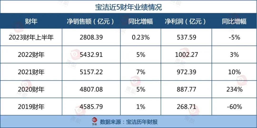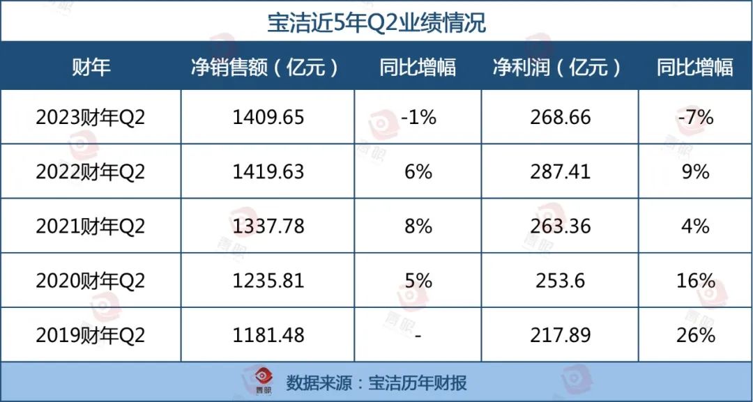 突破5000亿营收大关后,宝洁近五年来Q2业绩首现营收和净利双下滑。