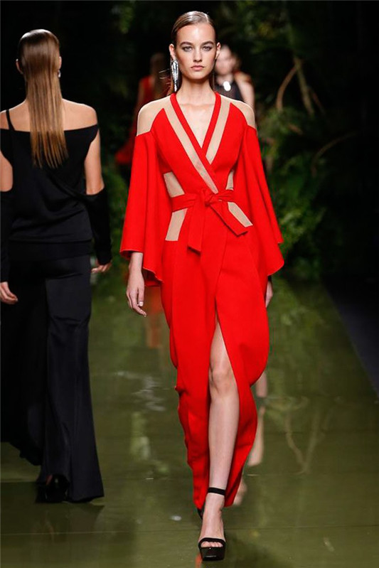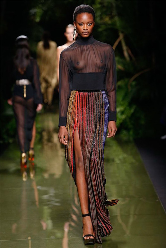 但是就整体设计而言,这些都是不关紧要的改变,因为多达80个的造型显得过于雷同和冗长,那些性感暴露的高开叉礼服除了让人眼花缭乱之外,更多的则是乏味。Rousteing 在后台接受采访时说,无论他做什么,即便他用更多的布匹将模特们的身体包得更严实,人们还是觉得他很粗俗。“但是我觉得这真的很chic,非常法国,就是我眼中的巴黎”,还是奉劝Oliver Rousteing一句,巴黎不是这样已经很久了。