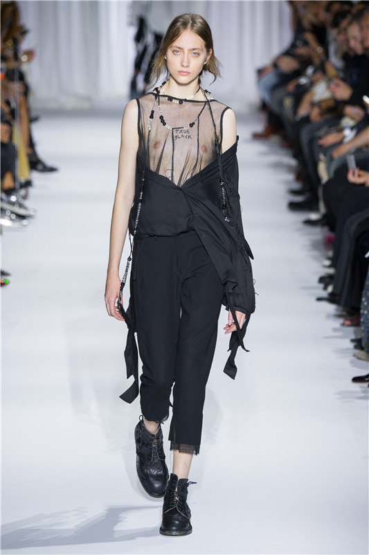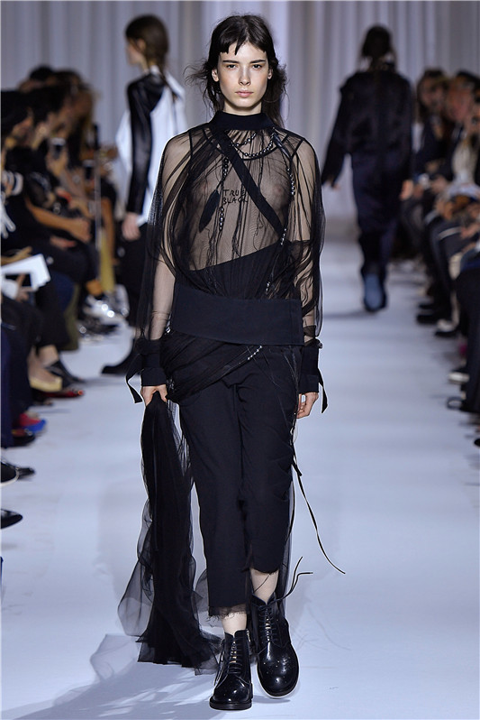如果不是靠着观众的掌声的起伏,那么位于秀场后方的人恐怕都意识不到Sébastien Meunier的谢幕。按他的话说,自己的名字没必要出现在Ann Demeulemeester之前——这也正是这场新秀留给人们的印象,假设你不执迷某个具象的面容和身份,那么你不会发现Ann Demeulemeester消失得那么彻底。