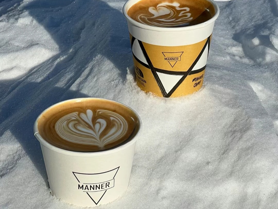 今年1月,Manner咖啡首家雪场店在吉林松花湖山顶落地,具体位置在滑雪场山顶的高级道旁边,营业时间与缆车同期。这也是Manner的第一家雪场常驻门店。而在此前,它曾经连续多年在各大雪场开设快闪模式的“雪场咖啡摊”,比如2021年和SPADERS黑桃滑雪及SNOWHERO滑雪俱乐部合作,在吉林松花湖和北大湖雪场开设咖啡摊;2022年12月,Manner咖啡又在崇礼云顶与吉林松花湖开设了雪场咖啡快闪店。