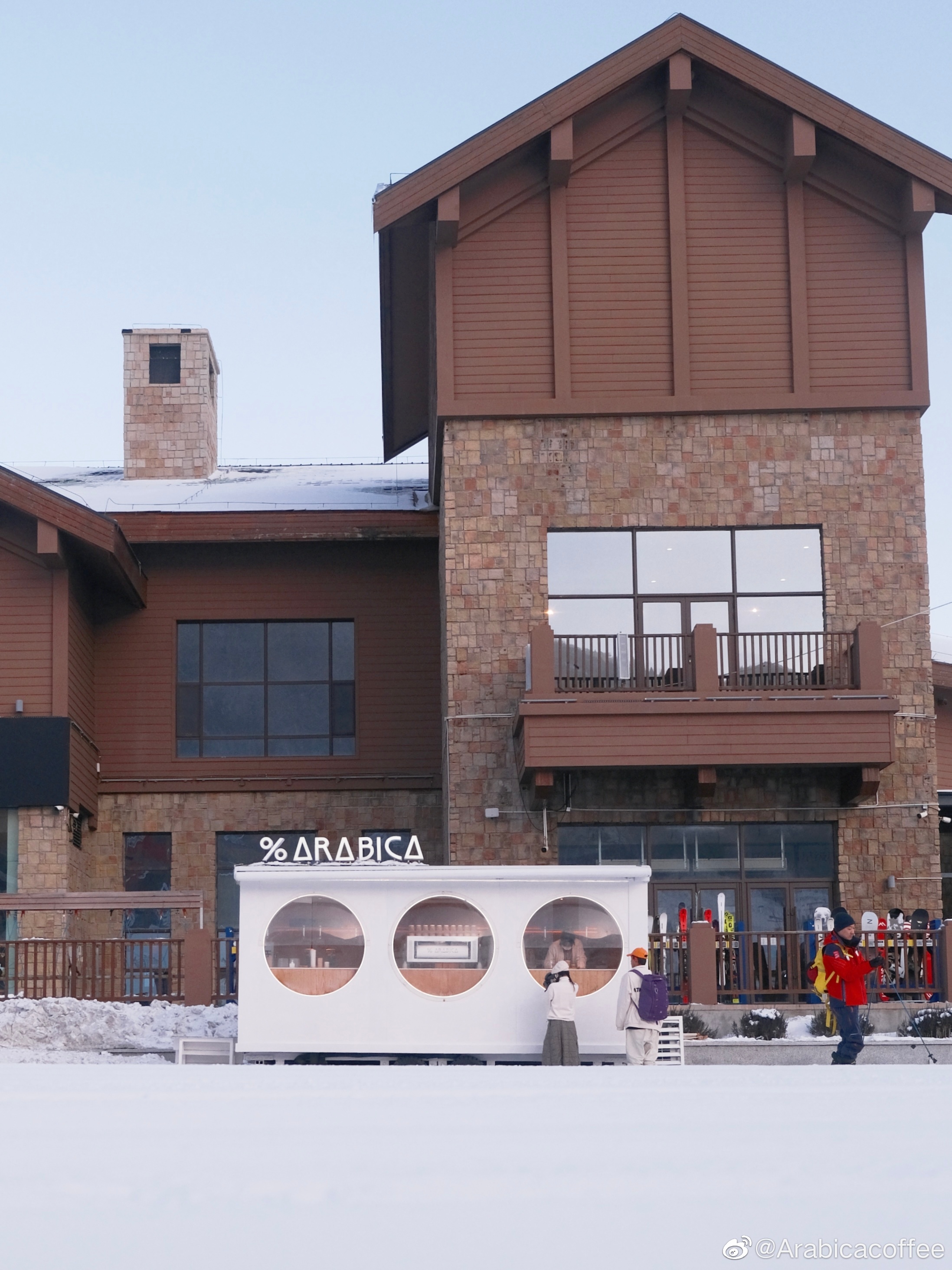 不仅仅是Manner咖啡。2022年1月,皮爷咖啡也在吉林开设了始祖鸟山地课堂北大湖店,同时还推出了特调产品:椰雪摩卡(冰/热)和野柠激赏(冰),以及适合滑雪场景的特制外带铝罐装。还有精品咖啡品牌 %Arabica也于今年1月,在吉林北大湖滑雪度假区内开店。