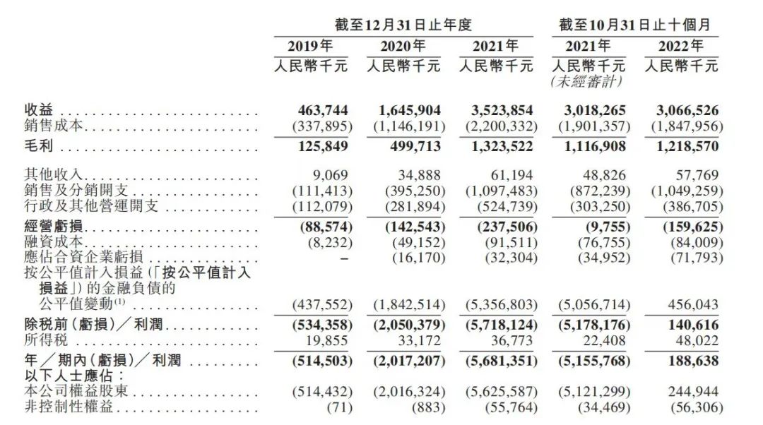 在取得业务快速扩张的同时,KK集团的整体毛利率也在不断增长,2019年至2022年10月31日间,公司毛利率分别为27.1%、30.4%、37.6%及39.7%,毛利则分别为1.26亿元、5亿元、13.24亿元及12.19亿元。