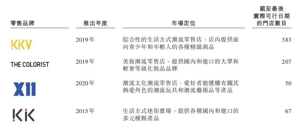 据招股书披露,KK集团旗下拥有四大零售品牌KKV、THE COLORIST、X11和KK馆分别拥有383、207、50、67家门店,遍及中国190多个城市及印度尼西亚的13个城市。据悉,公司已经建立覆盖广泛且管理良好的全国性零售店网络。
