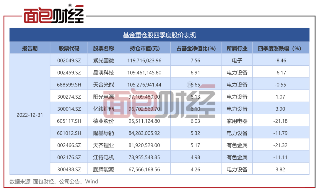 重仓股表现欠佳是拖累该基金净值表现的重要原因。数据显示,2022年四季度末的前十大重仓股中,多数股票在去年四季度出现股价下跌,部分股票更是大跌超过20%。