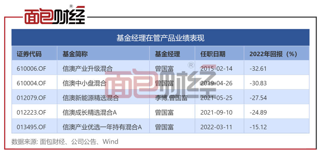 截至2022年末,曾国富共管理5只产品(初始基金口径,包括共同管理产品),合计管理规模超过60亿元。