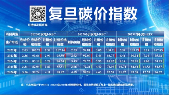 在I-REC价格指数上,复旦指数显示除了2023年风电和光伏项目产生的I-REC划转价格和注销价格较1月小幅下跌外,其余各项价格普遍上涨,扭转了上月的下跌态势。