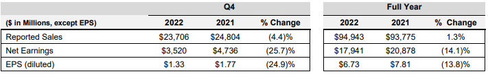 日前,强生公司在官网发布2022年第四季度及全年财报。数据显示,2022全年,强生销售额增长1.3%至949亿美元(约人民币6439亿元),去除汇率影响后同比增长6.1%;净收入下降14.1%至179亿美元(约人民币1214亿元)。