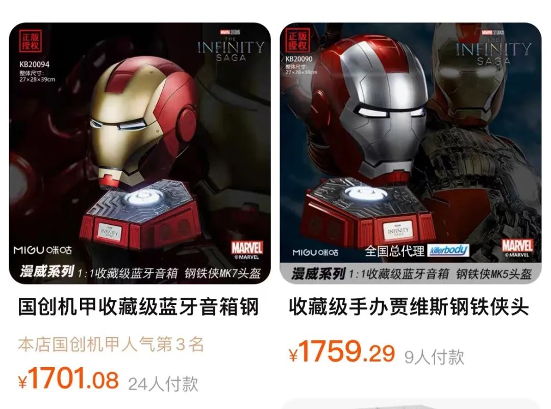 比如,“羊很大”天猫旗舰店中,上架了可蓝牙遥控的AR正版笨笨智能积木,成为店铺热销品,月销超过1000+;“Killerbody”天猫旗舰店推出MOSS收藏级机器人、收藏级地表救援队服装等,最低售价千元起。