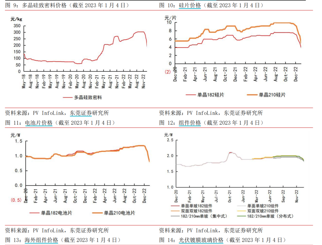 有业内人士分析称,组件目前跌幅小与上游价格传导需要时间有关,此外海外市场不受春节假期及冬季冻土难以施工的影响,撑起了组件的装机需求。多家券商机构也认为,组件环节有望从硅料降价中受益。