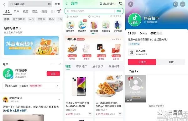但对于抖音方面来说,可能早已试图踏足“电商超市”这个版本,并且其目前在本地生活服务领域也已经小有成绩。在报告中显示,抖音本地生活业务覆盖城市已超370个、合作门店超100万,种草短视频达16.7亿个、种草直播间有235万个。另一方面,抖音电商过去一年GMV为同期的3.2倍,在电商品牌升级为全域兴趣电商后,抖音中的短视频和直播内容、商城、搜索,也得以进一步的协同互通。