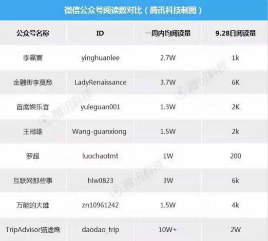 (媒体曝光的部分公众号9月28日前后阅读量对比)