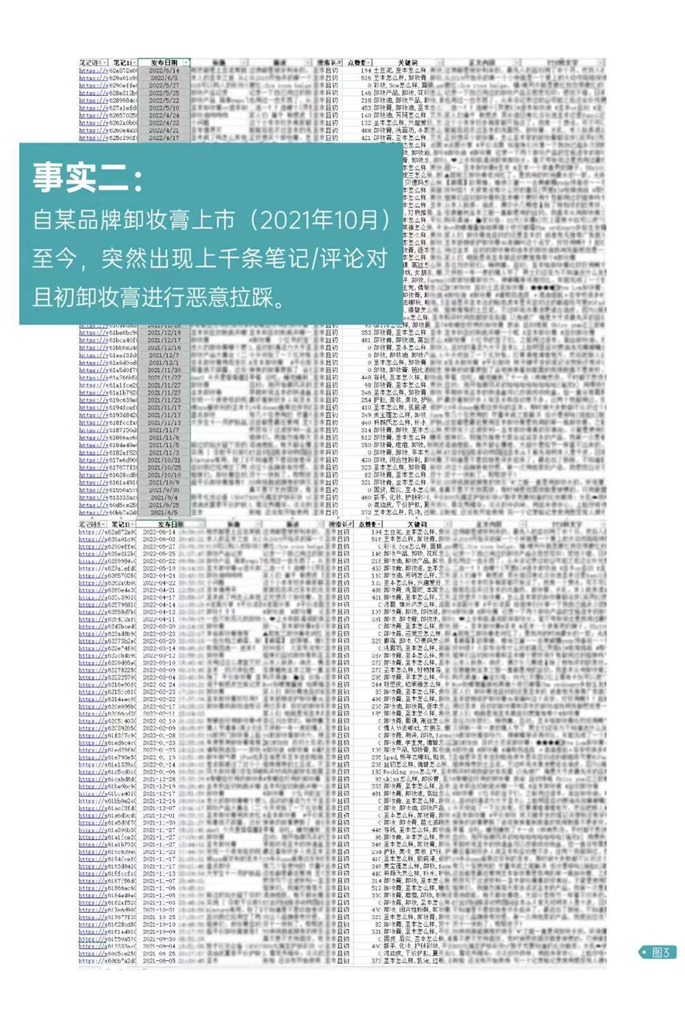 在声明中,且初首先同样表示自己也是恶意攻击的受害者。例如,且初土豆泥卸妆膏等产品,就在小红书平台遭受了长达两年多的大量虚假恶评。通过后续对28万条相关品牌的数据分析,且初直指“发现了某品牌恶意参与的事实”。