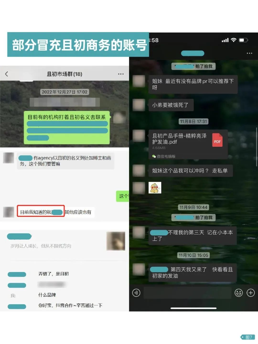 从至本提供的截图中不难看出,虽然打了马赛克,依旧可明显看出且初品牌被卷入其中。