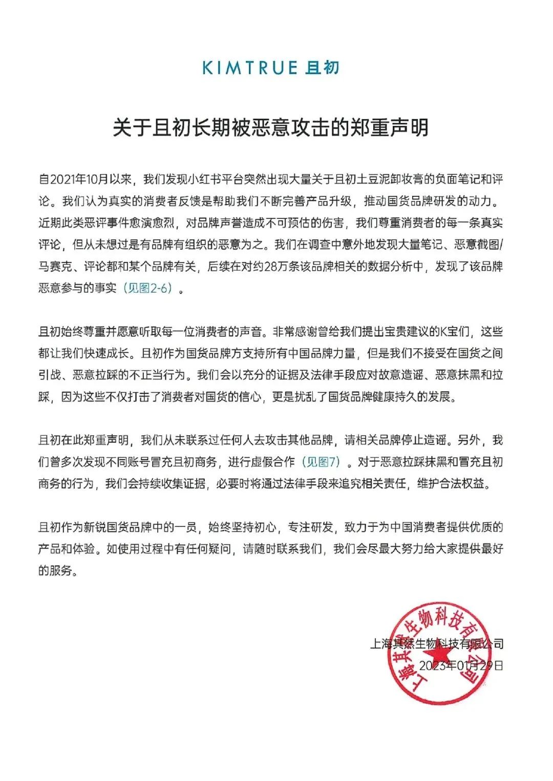 作为回应,且初于下午3时左右,先后用其官方账号@KIMTRUE且初在小红书平台、微信公众号和微博等平台,发布郑重声明。